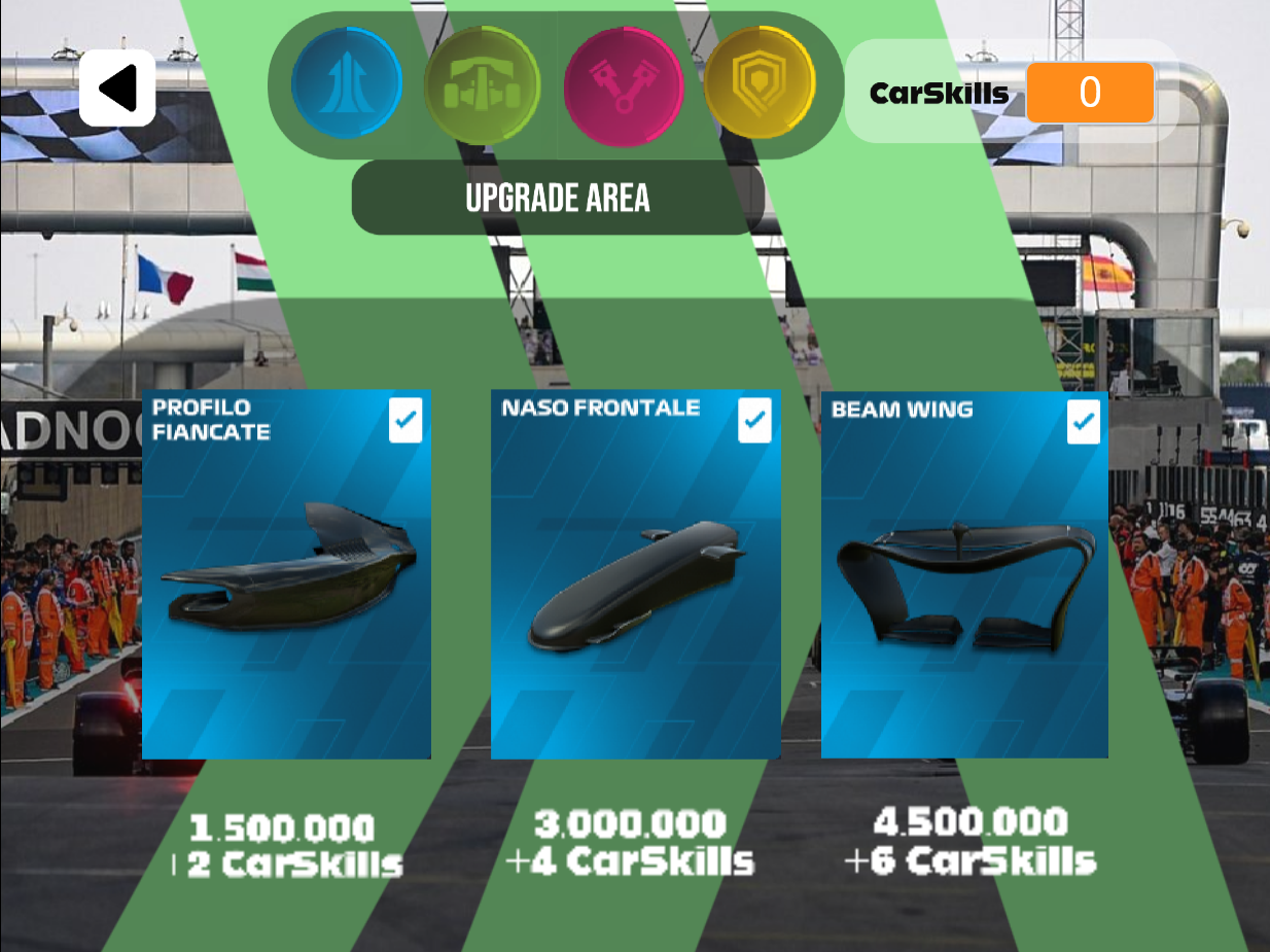 -Finally in F1 Manager S2 v2.4.00 there is the new "Idea-Detailed Car Upgrade System" with 4 sections of car upgrades (aerodynamics, chassis, power unit, resistence)