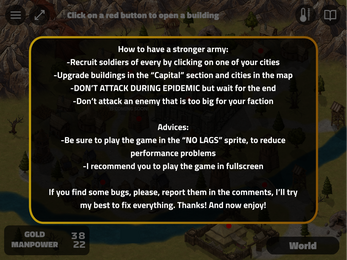In this medieval strategy game, you take on the role of a lord or lady tasked with building and managing their own city. This involves constructing and upgrading various buildings, such as farms, barracks, and castles, to generate resources and train troops. You should also carefully manage their economy, balancing income and expenditure to ensure the city's prosperity. When you're ready, you can raise armies and engage in battles with rival cities. Combat is not simply a matter of numbers, however, as factors such as terrain and weather play a significant role in determining the outcome. In addition to player-controlled conflicts, the game world features simulated wars between other AI-controlled states, adding an element of dynamism to the gameplay.